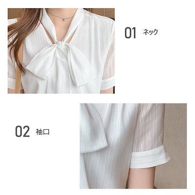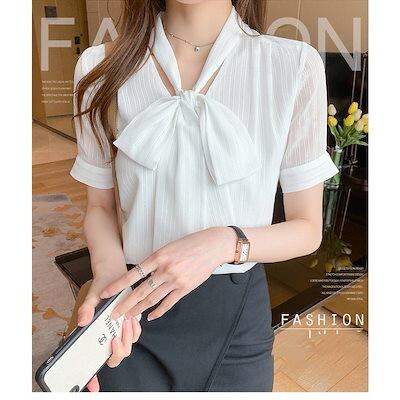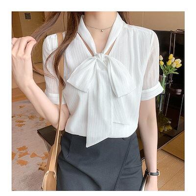 ブラウス レディース 40代 春夏新作 オシャレブラウス 白シフォンシャツ 半袖トップス リボンネック 上品 大人 通勤OL ゆったり シャツ30代 50代