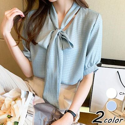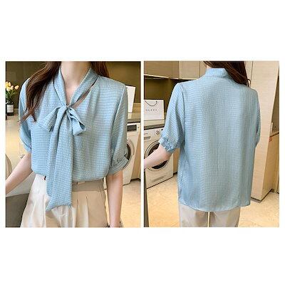 ブラウス レディース 40代 春夏新作 オシャレブラウス 白シフォンシャツ 五分袖トップス リボンネック上品 大人 通勤 ゆったり シャツ30代 50代