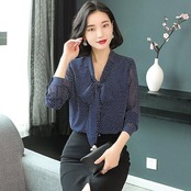 ブラウス レディース ドット柄 長袖ブラウス シフォン リボン ボウタイ シャツトップス 韓国風 フォーマル 通勤 オフィス 着痩せ 気質 シンプル おしゃれ