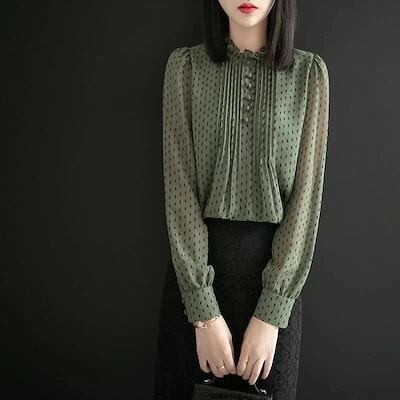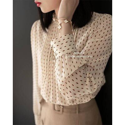 ブラウス レディース 長袖ブラウス 春秋 オフィスブラウス リボンネック ドット柄トップス 韓国風 大人 上品 通勤ゆったりシャツ 40代
