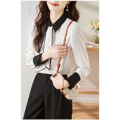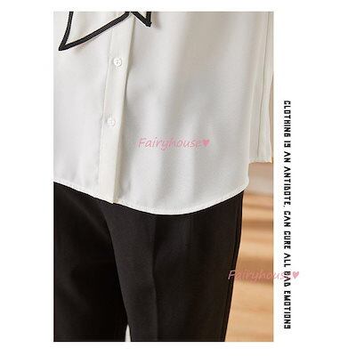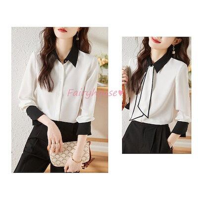 ブラウス レディース 長袖ブラウス 秋服 オフィスブラウス リボンネック オシャレブラウス 白シフォントップス 韓国風 大人 通勤 ゆったりシャツ 40代 30代