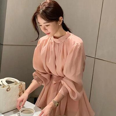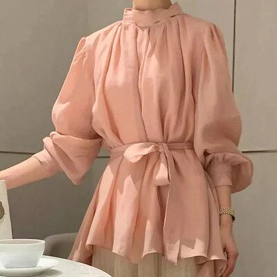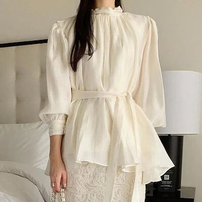 ブラウスシャツトップスレディースシフォンリボン無地長袖スキッパーシャツ春夏上品薄仕事カジュアル通勤フォーマルオフィスパーティー結婚二次会ビジネスOL