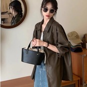 リボン ブラウス リボン マウンテンパーカー シアーシャツ カーディガンシアーシャツ 2024春 コートレディースコクーンコートセミロングフェイクレザーアウタージャケットカーディガン通勤通学大人