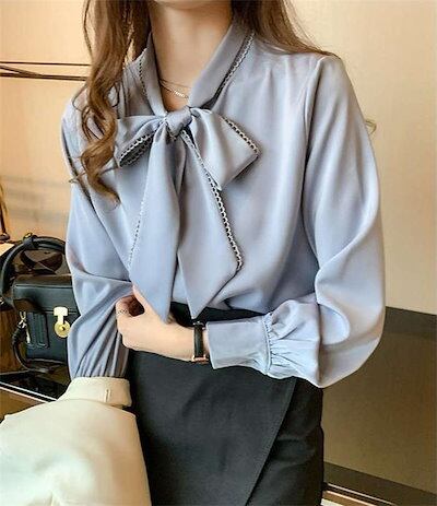 ブラウスレディースシャツインナートップススーツインナービジネススーツ白シャツ秋ボウタイカラー長袖ボウタイリボンリボンタイボウタイリボンオフィスカジュアルフォーマル体型カバー小顔効果大きいサイズ通勤お呼