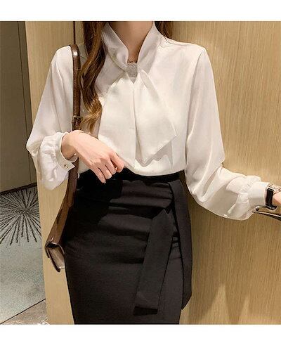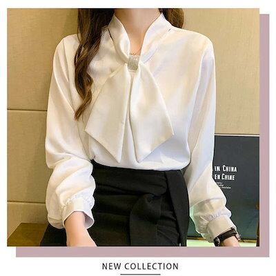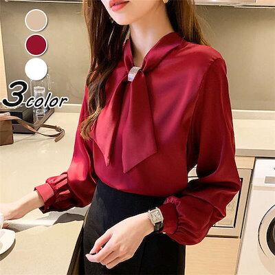 ボウタイブラウス長袖ブラウスボウタイシャツブラウスとろみシャツレディースブラウスレディースきれいめ40秋作オシャレブラウスシルク風シャツ長袖トップスリボンVネックブラウス大人通勤ゆったりシャツ3050