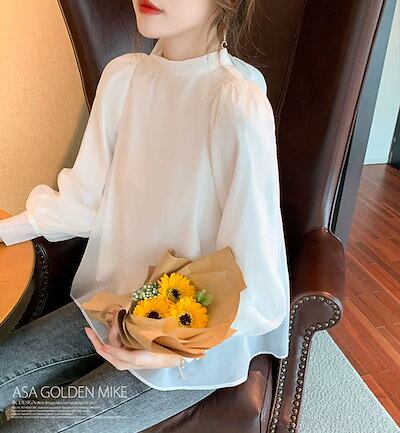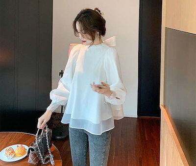 秋作ブラウスレディースボウタイブラウスボウタイリボンブラウスボリューム袖袖ギャザーふんわり袖長袖大人無地個性的体型カバー秋作おしゃれパフスリーブシフォンブラウストップス通勤上品ゆったり304050