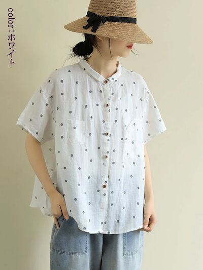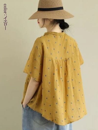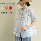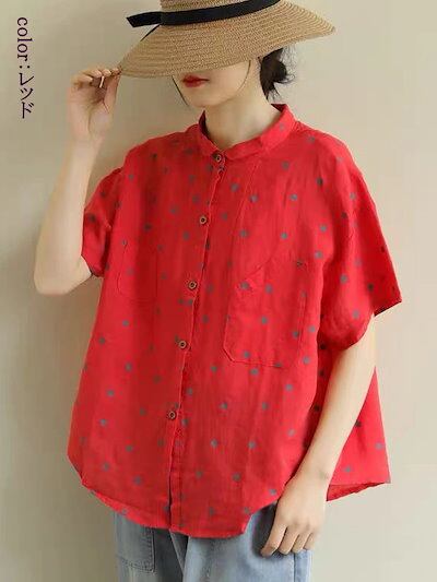 襟付き ブラウス 半袖 シャツ 花柄 可愛い カジュアル シャツブラウス レディース 折り襟 無地 シンプル ナチュラル ゆったり 襟付きブラウス 全開 ボタン留め トップス 体型カバー 通気性