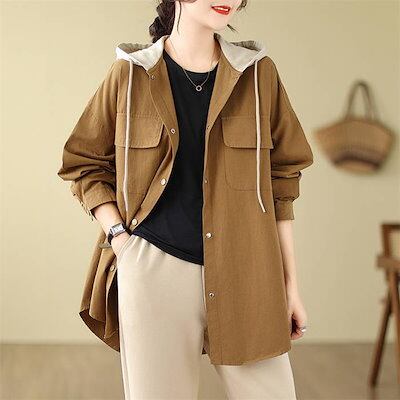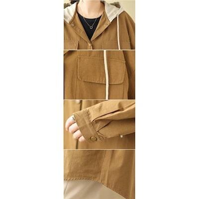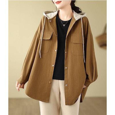 短納期 シャツ コート アウター レディース 新作 フード付き 綿 パーカー 無地 長袖 スプリングコート 春 春 デザイン感 紐 ボタン ポケット お洒落 大きいサイズ カジ