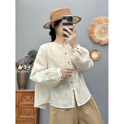 新入荷 長袖 ブラウス トップス 刺繍 シャツ レディース チュニック 春 長袖ブラウス 長袖トップス 綿 春 配色 コットン シャツブラウス 前開き ボタン留め 夏 刺繍ブラ
