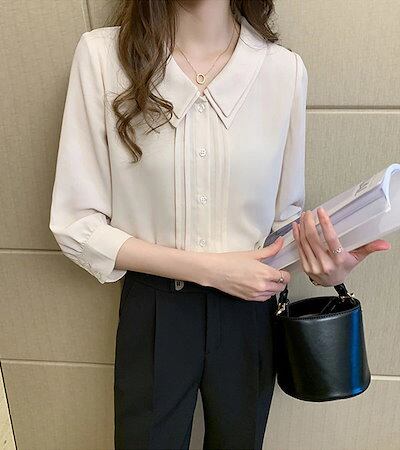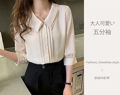 ブラウス レディース シャツブラウス 五分袖 丸襟 着回し シフォン ボタン 感 オフィス L1278