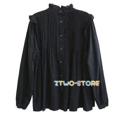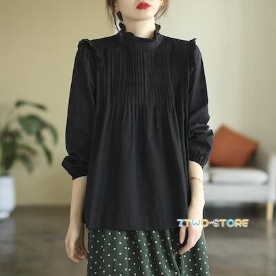 レディース シャツ ブラウス 長袖 フレア スタンドカラー パフスリーブ ボリューム袖 プリーツ 後ろボタン 無地 白 上品 きれいめ ナチュラル フェミニン スウィ