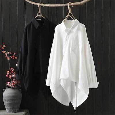 シャツ ブラウス レディース フィッシュテール 綿 トップス コットンブラウス ショート丈 長袖 綿 シャツブラウス 肌触り良い 前開き 着痩せ 可愛い ボタン付き きれいめ お洒落 通勤 大人 体型
