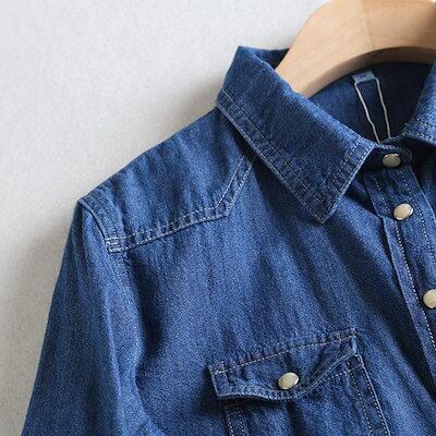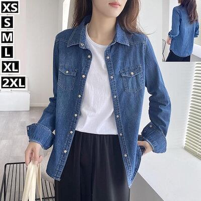 春夏 レディース トップス デニムシャツ ウエスタンシャツ 綿デニム スナップボタン ロールアップ 大きいサイズ ウエスタン シャツ