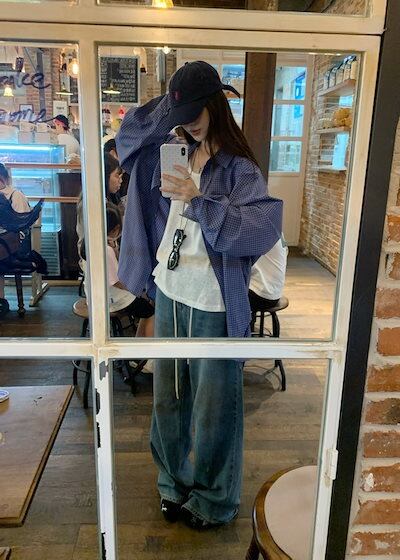 2025春夏トップス シャツ 長袖 チェック柄 ボタン 襟 スタンダードカラー 秋 青 ブルー おしゃれ かわいい きれいめ 大人っぽい 韓国ファッション レディース お出かけ