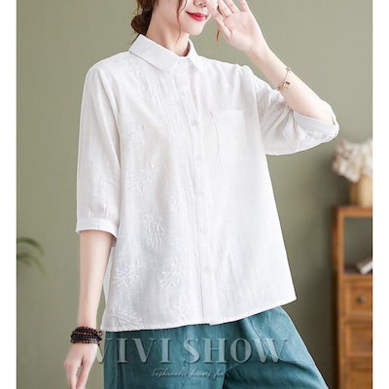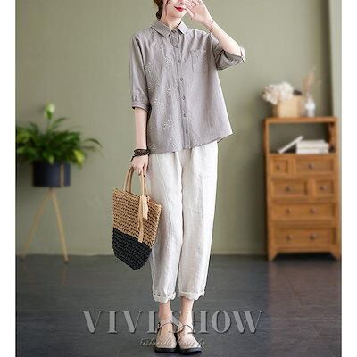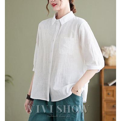 迅速な配達 レディース 5分袖 トップス カジュアル シンプル おしゃれ 涼しげ 襟付き ボタン 刺繍