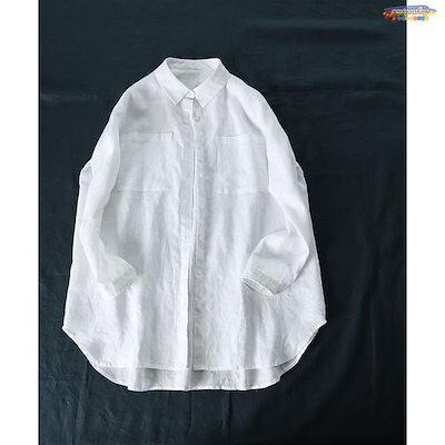 人気商品,シャツ 長袖 ブラウス リネン 立ち襟 レディース シャツブラウス 前開き 長袖シャツ ボタン留め ポケット有り 体型カバー トップス ゆったり