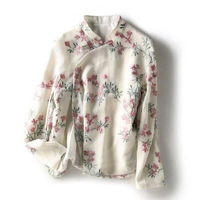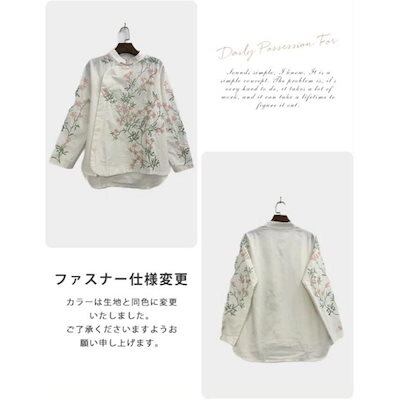 人気の新作,ブラウス チャイナ風 レディース 長袖 リネンブラウス 綿麻混 花柄 刺繍 シャツ スタンドカラー プルオーバー チャイナボタン ゆったり ナチュラル 春 夏 秋