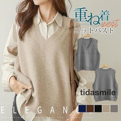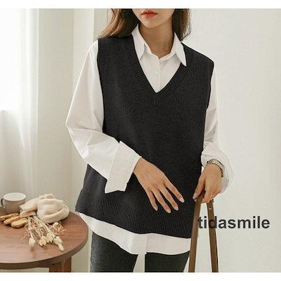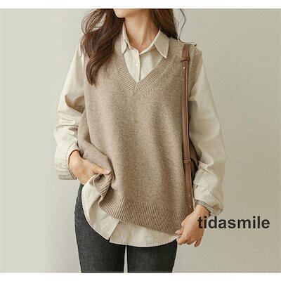 ニットベスト レディース 春秋冬 ベストセーター ノースリープ 無地 Vネック ニットベスト カジュアル 韓国風 ゆったり 着痩せ