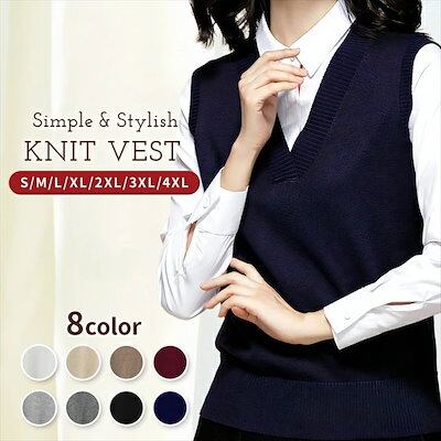 ニットベスト 大きいサイズ レディース オフィス 仕事 事務所 スクール 学校 中学生 高校生 ベストワーク ジレ Vネック 制服 春 秋 冬 ソフト S XL 2XL 3XL 4XL