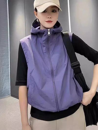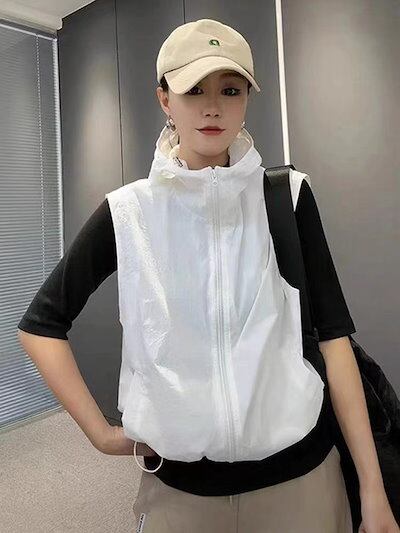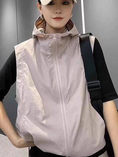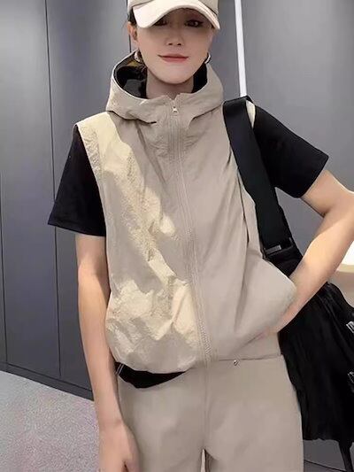 【3日以内出荷】ベストフード付き ノースリーブ 通気性 パーカー ジャケット レディースウェア 春夏 サンウェア カジュアル トップス