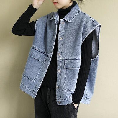 冬アウター 韓国ファッション 春新作 大きいサイズ ジャケット アウター レディース 通勤 タンクトップ ベスト アウター デニム ベスト着痩せ