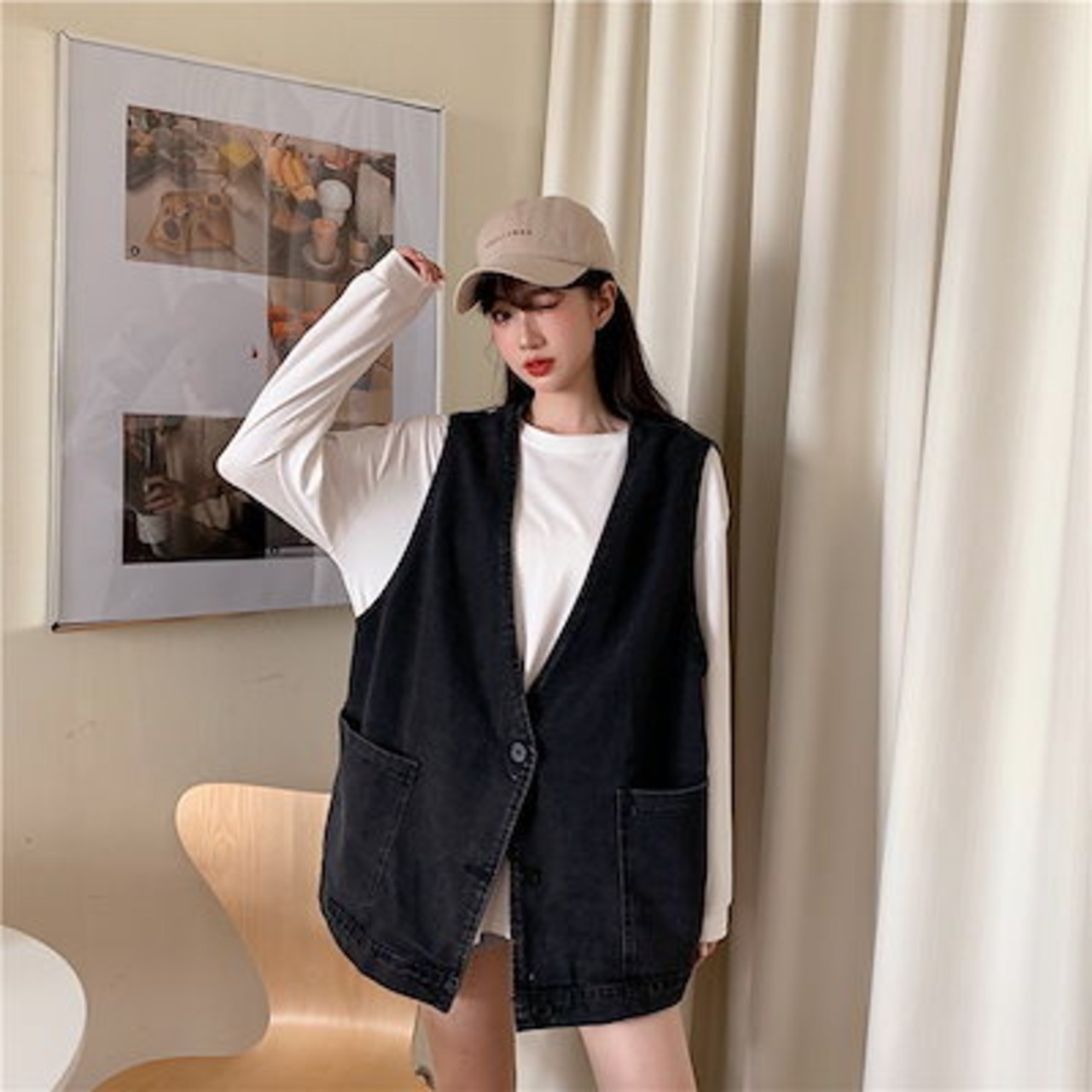 韓国ファッション 春新作 流行り ベスト アウター レディース 百掛け 通勤 タンクトップ ベスト アウター デニム ベスト
