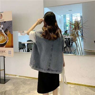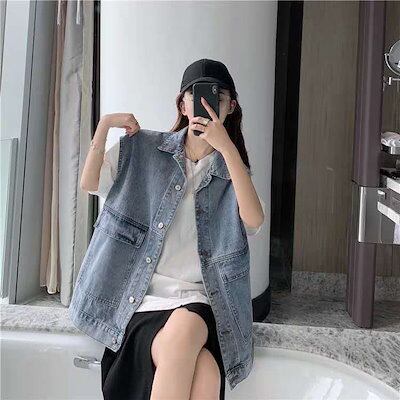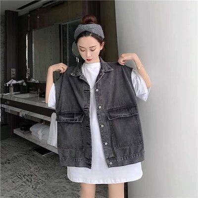 韓国ファッション 春新作 ベスト アウター レディース ゆったり 通勤 タンクトップ ベスト アウター デニム ベスト