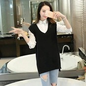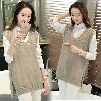 ベスト 春と春 新しい Vネック ニット・セーター ベスト レディース ルーズ ジャケット ミドル丈