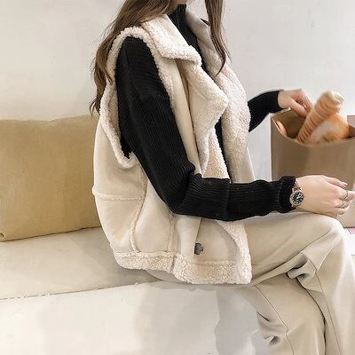 春 アウター ラムウールウエストコートレディース春春ノースリーブベストベストジャケット