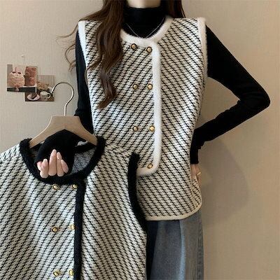 ベスト ダブルブレスト ウエストコート ジャケット レディース 春春 テンパメント 薄手 ニット