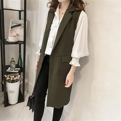 ジャケット 【2点ご購入で3OO円OFF!】 2024春新作 韓国ファッション スーツ ベスト レディース 春夏 テーラードベスト ロングベスト ロングジレ ノースリーブ オシャレ 春 秋 前開き お