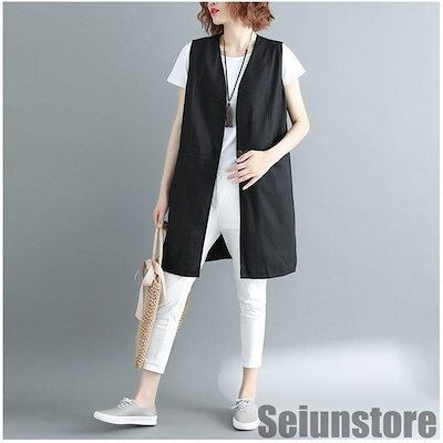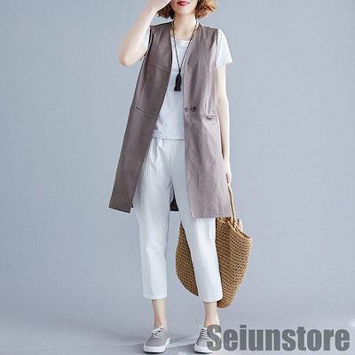 ベスト ジレ レディース 秋 春 ロング 前開き オフィス ノースリーブ 通勤 アウター コーデ トップス 重ね着 羽織り 着痩せ
