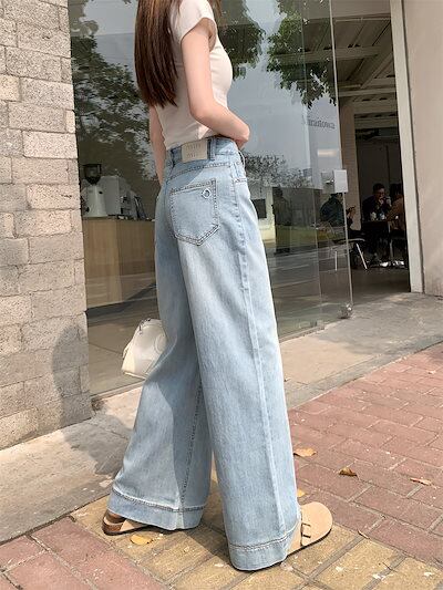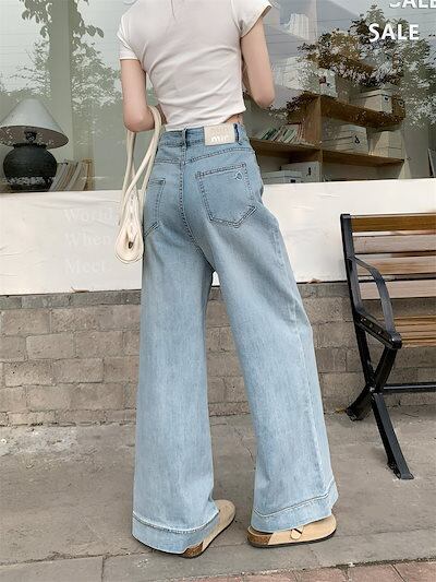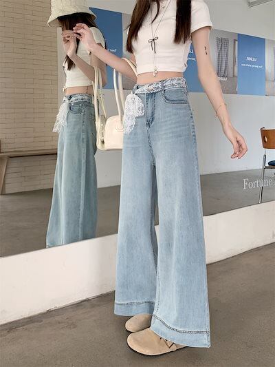 2025春夏 デニムパンツ ボトムス ハイウエスト ジーンズ K-POP ストリートファッション系モップ韓国風ファッション練習ジーンズ シルエット加工ゆったりレッグレディースカジュアル型サイズ衣装