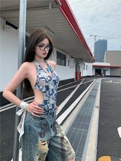 2025春夏 デニムパンツ ボトムス ハイウエスト ジーンズ K-POP ストリートファッション系モップ韓国風ファッション練習ジーンズ シルエット加工ゆったりレッグレディースカジュアルジーパン衣装