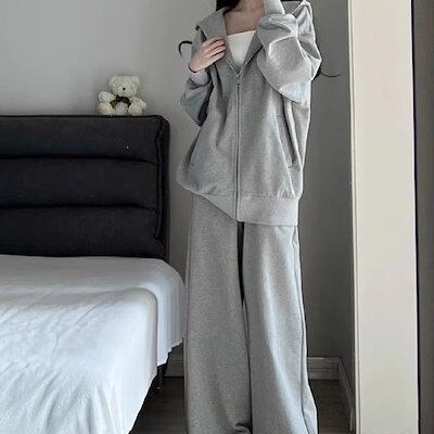 2025 春 新作 スウェット上下セット フード付き スウエット ワイドパンツ 2点セット 長袖 パーカー セットアップ レディースファッション
