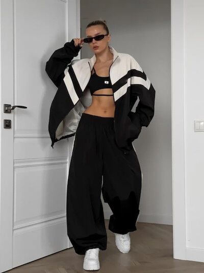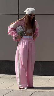 韓国 セットアップ ストライプ 色の衝突 スタンドカラー ジャケット ジャケット 春 ルーズ カジュアル パンツ スポーツスーツ レディース ツーピースセット