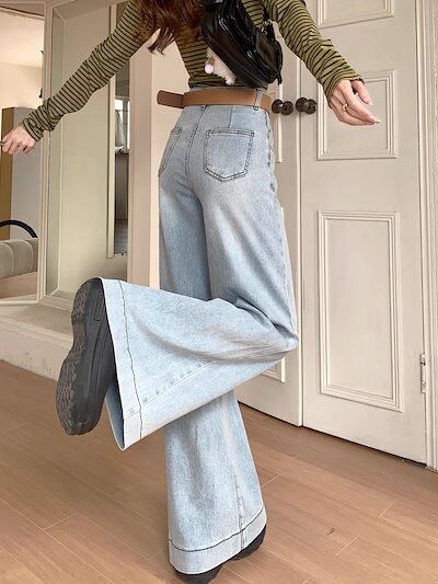 2025春夏 デニムパンツ ボトムス ハイウエストモップジーンズ K-POP ストリートファッション系モップ韓国風ファッション練習ジーンズ シルエット加工ゆったりレッグレディースカジュアル型サイズ衣装