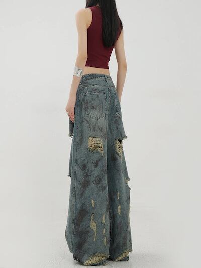 2025春夏 デニムパンツ ボトムス ハイウエスト ジーンズ K-POP ストリート系ファッション系韓国風ファッションウェア練習ジーンズ シルエット加工ゆったり_レディースカジュアル型メンズライク衣装