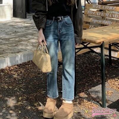 パンツ デニム ジーンズ ワイド ストレート ハイウエスト 脚長効果 美脚効果 細見え ウォッシュ加工 春 カジュアル 韓国ファッション レディース お出かけ