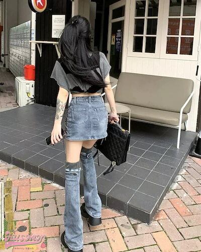 2025春夏 デニム スカート 2点セット デニム ハイウエスト ジーンズ カジュアル 美脚 脚長丈加工 レディース