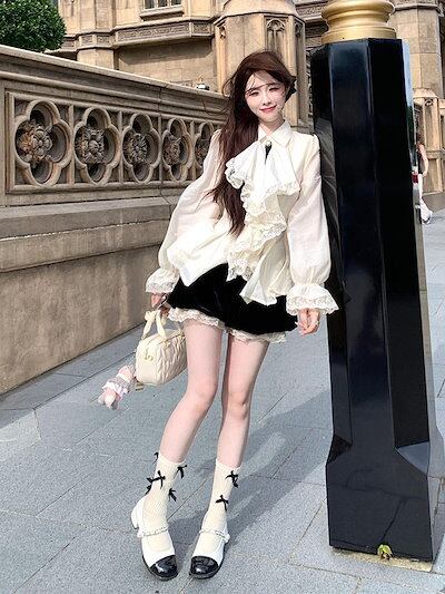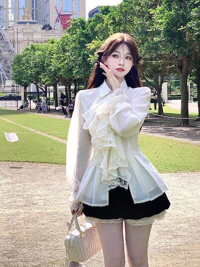 Qoo10限定涼しく楽ちんセットアップフレンチレースワンピース 春の新作ファッション レディース きれいめシャツ デザイントップス+パンツ セットアップ