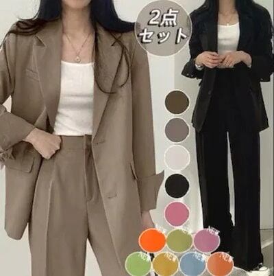2点セット パンツ スーツ レディース テーラードジャケットセットアップ ワイドパンツ フォーマル 春夏春秋卒業式 ママ スーツ セットアップ