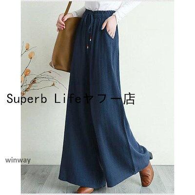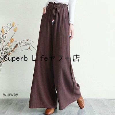 ガウチョパンツ レディース ワイドパンツ 春 夏 秋 リネン パンツ 無地 綿麻 着痩せ 体型カバー 白 黒 ボトムス ハイウエスト 大きいサイズ ゆったり カジュアル