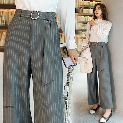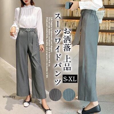 ワイドパンツ レディース 春 夏 コーデ フォーマル パンツスーツ ストライプ 大人 美脚パンツ 着痩せ テーパードパンツ ローグ 30代 40代 50代通勤 OL
