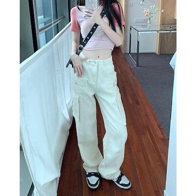 カーゴパンツ レディース ミリタリーパンツ ボトムス ロングパンツ ワイドパンツ 春 夏 秋 ハイウエスト 韓国ファッション