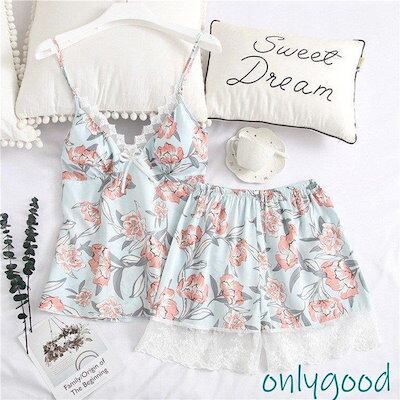 パジャマ ルームウェア レディース 春夏 レース花柄 パジャマ キャミソール ショットパンツ ルームウェア レーション 女性 可愛い 部屋着 寝巻き ランジェリー