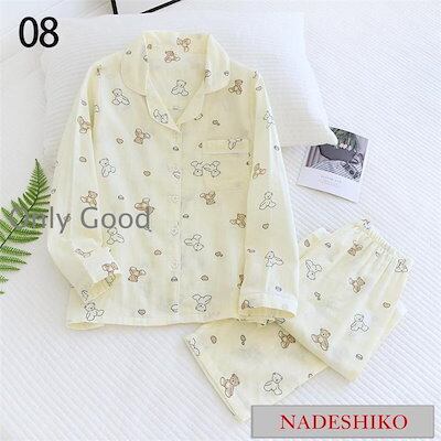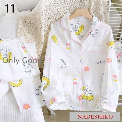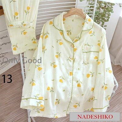 パジャマ レディース 長袖 ダブル ガーゼ ルームウェア 前開き 上下セット ロングパンツ ズボン 部屋着 旅行 寝巻き 着心地 かわいい 花柄 春 夏 秋