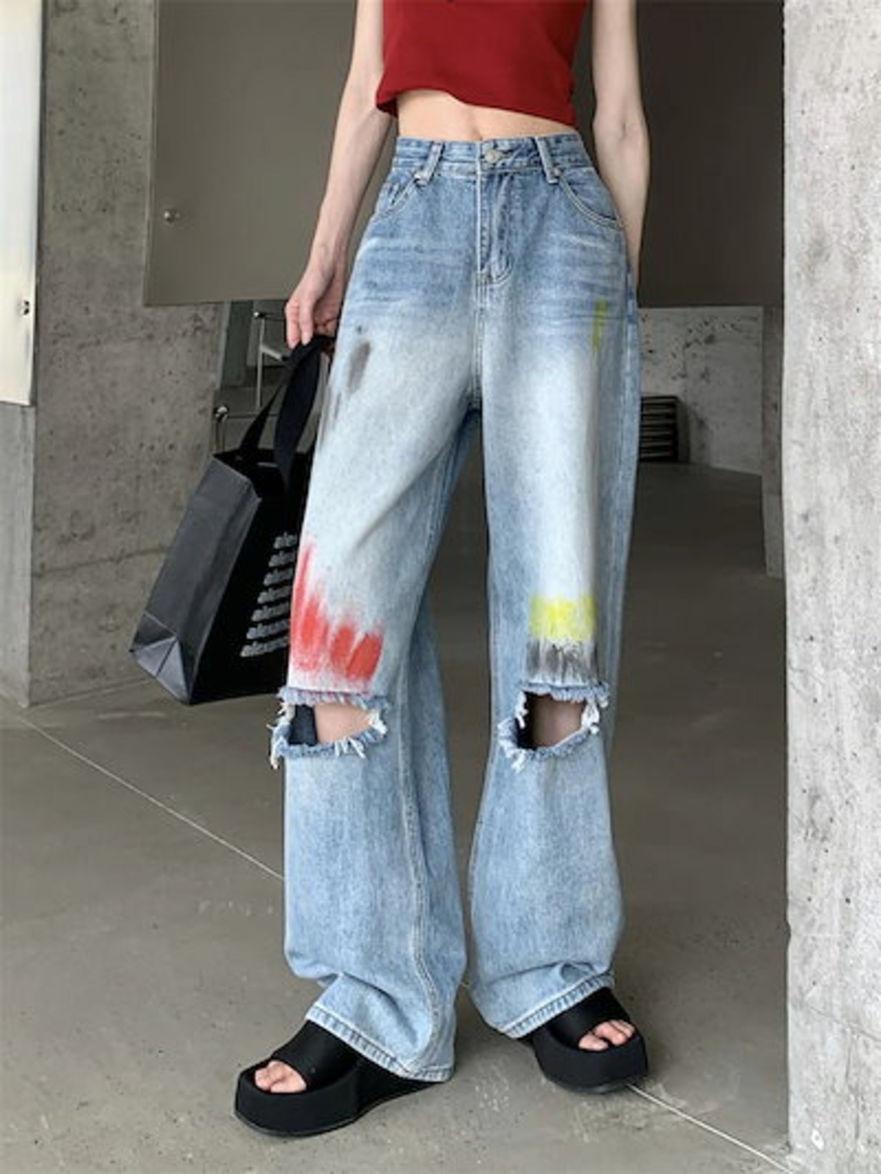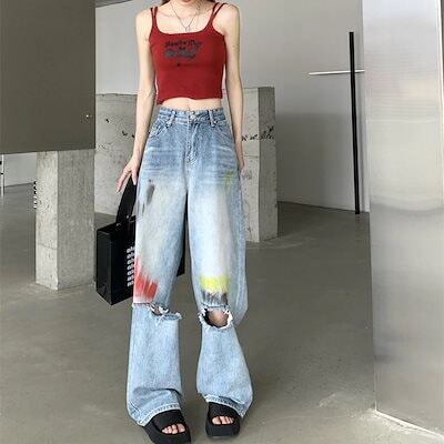 新作 ワイドパンツ ダメージジーンズ ワイドパンツ gパン ストレート ハイウエスト ゆったり ロングパンツ ボトムス カジュアル ヒップホップ ダンス ギャル 長ズボン レディース 春夏秋 ファッシ