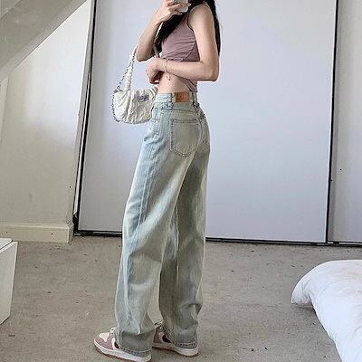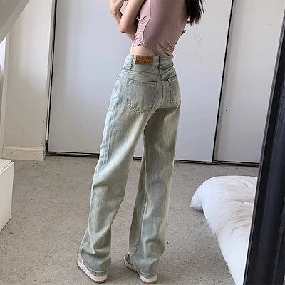 デニムパンツ 韓国 デニムパンツ 黄土色 ストレート ジーンズ レディース 2025春夏新作 ルーズ ドレープ ハイウエスト ドラッグパンツ ワイドパンツ 韓国ファッション