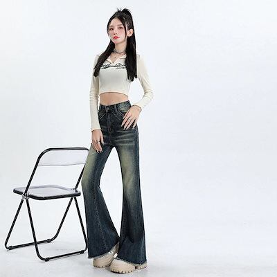 2025春夏新作 スラックスパンツ ブラック マイクロラッパ デニムパンツ おしゃれ ハイウエストゆったり見えやせ パンツ レディース 垂れ感 ワイドパンツ 韓国